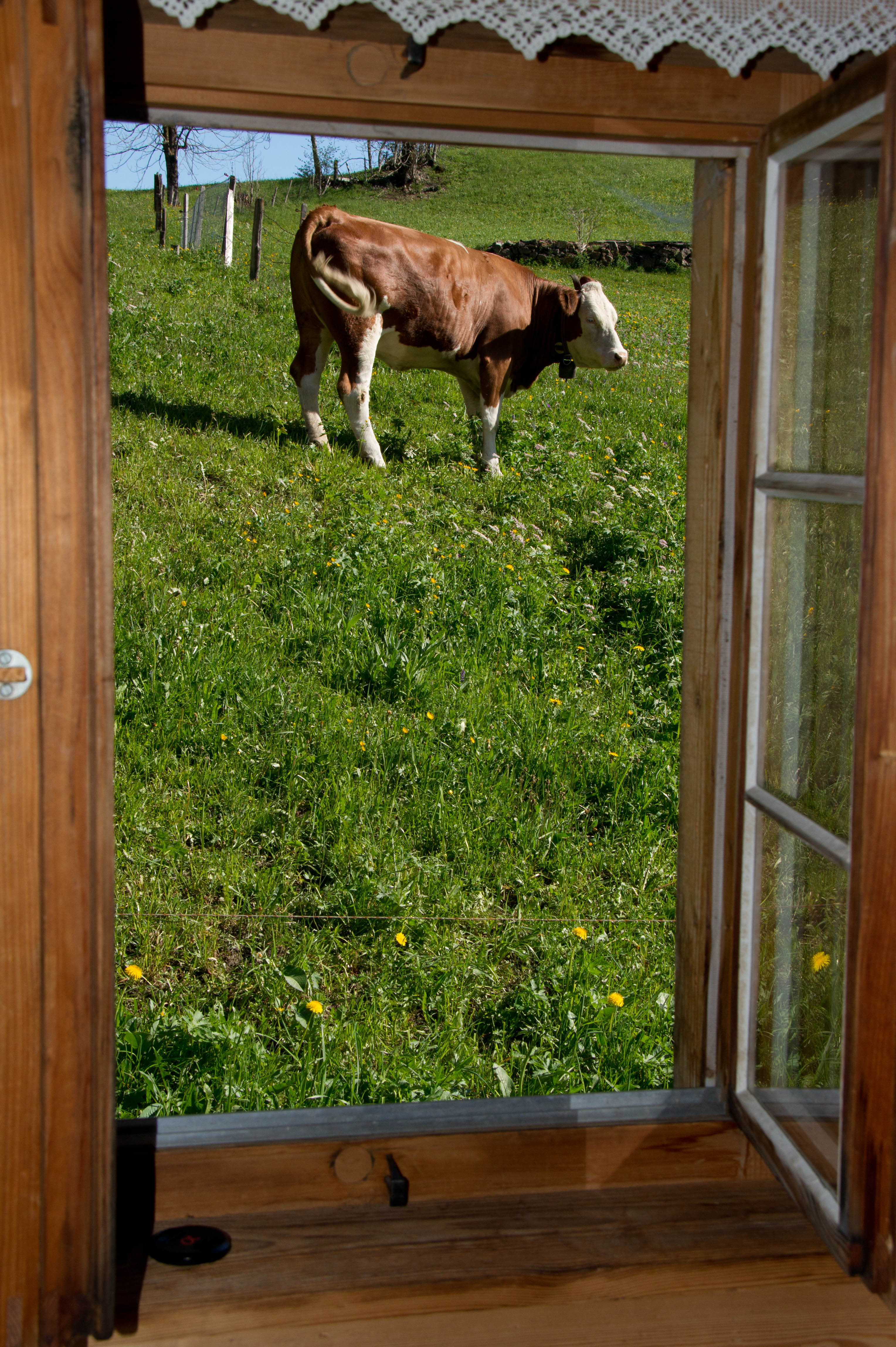 There was a couple there from North Carolina and we ate dinner with them, Peter, Kerry and their son every night. Kerry was a great cook and we would sit around the table for 3 hours for dinner. We all ate breakfast together as well and that would take around an hour and half. We had views from our room that looked out on a cow pasture on the back and a waterfall out of our skylight. Every morning the farmer would let the cows out at around 8:30 and put them in at 5:30. Peter was trying to teach me how to call the cows from my window so they would come over to me. I don’t think I got the singing part of the call down but it made him laugh.
