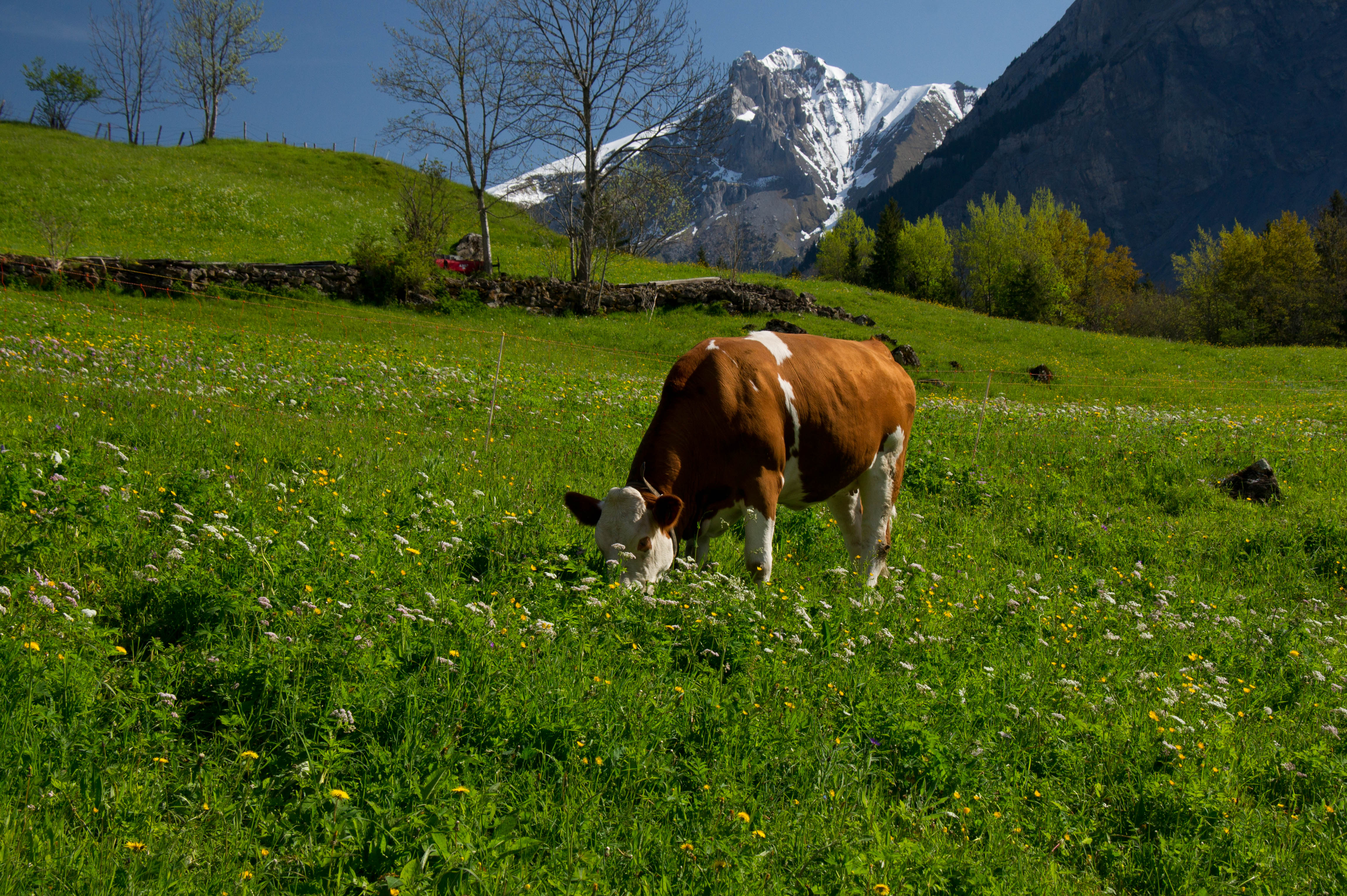 Here are some pictures of the cows I was trying to call from my bedroom window. There is an electric fence close to the window so they never get to close. The cows in Switzerland are very active right now because they are just getting get out for the first time this year to eat from the fields. Peter and Kerry were telling us that they get very excited when they go to the mountains. When the farmers send them up to the mountains they wear larger cow bells. The cows then know to get in line in order of oldest to youngest and head up the mountain. I guess they are smarter than I thought.