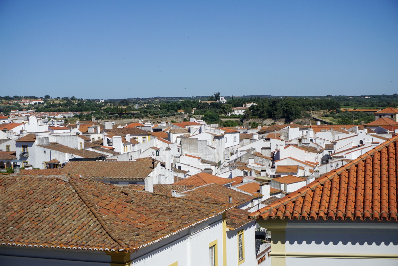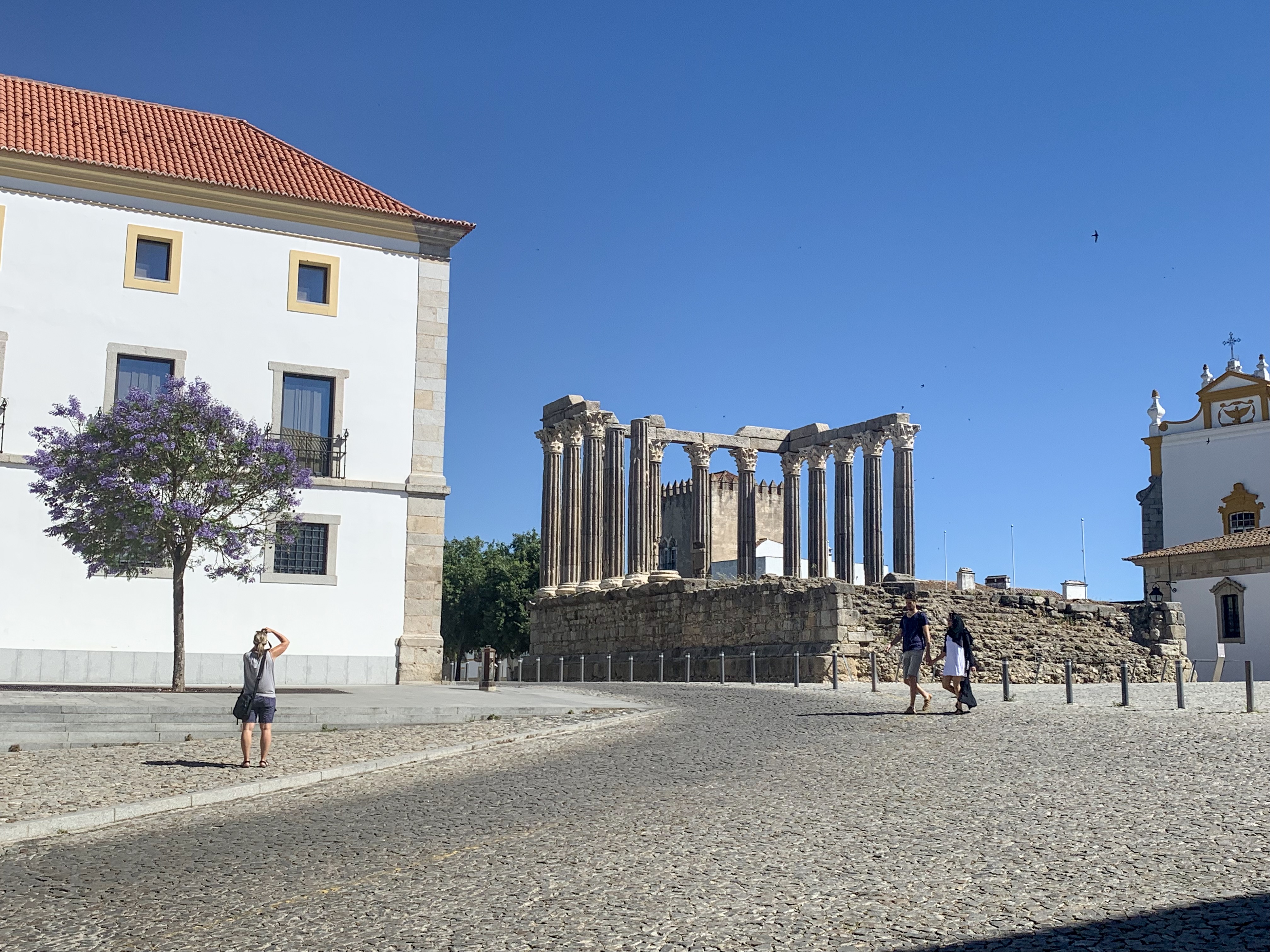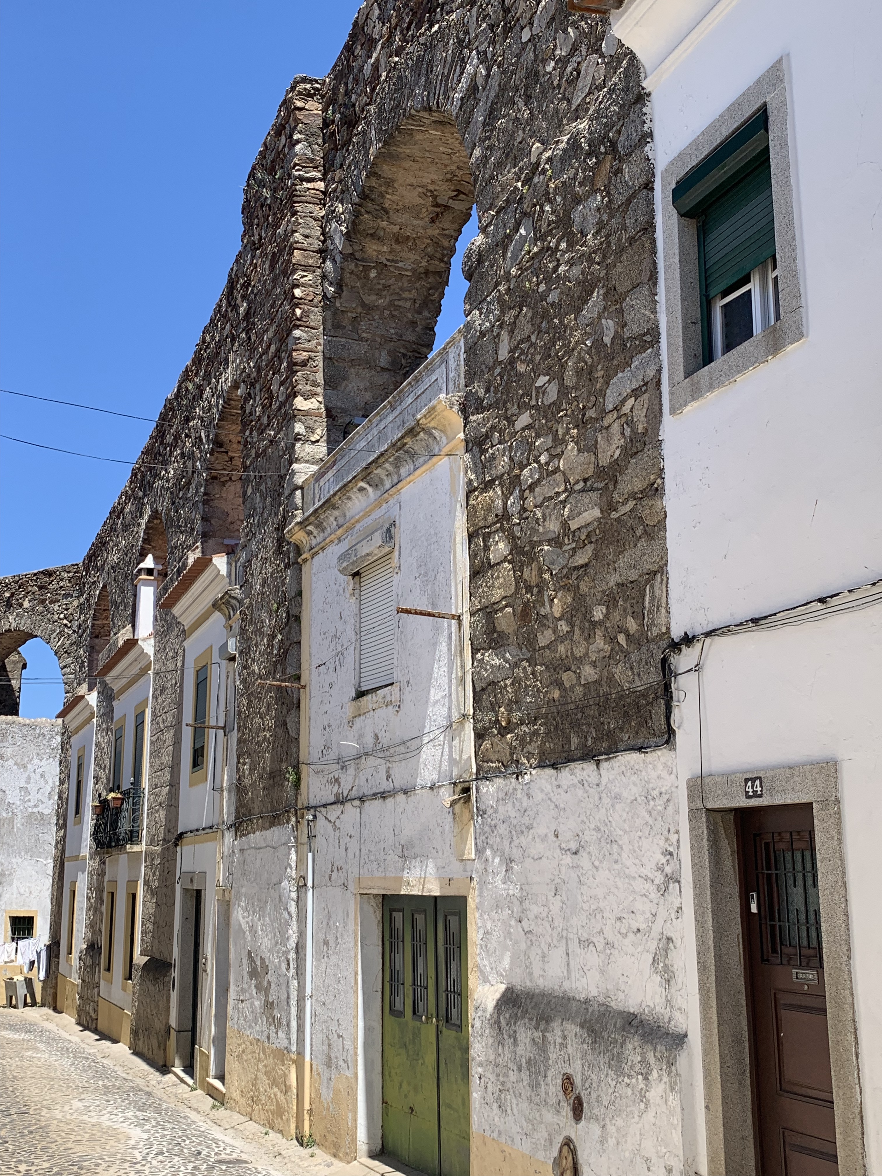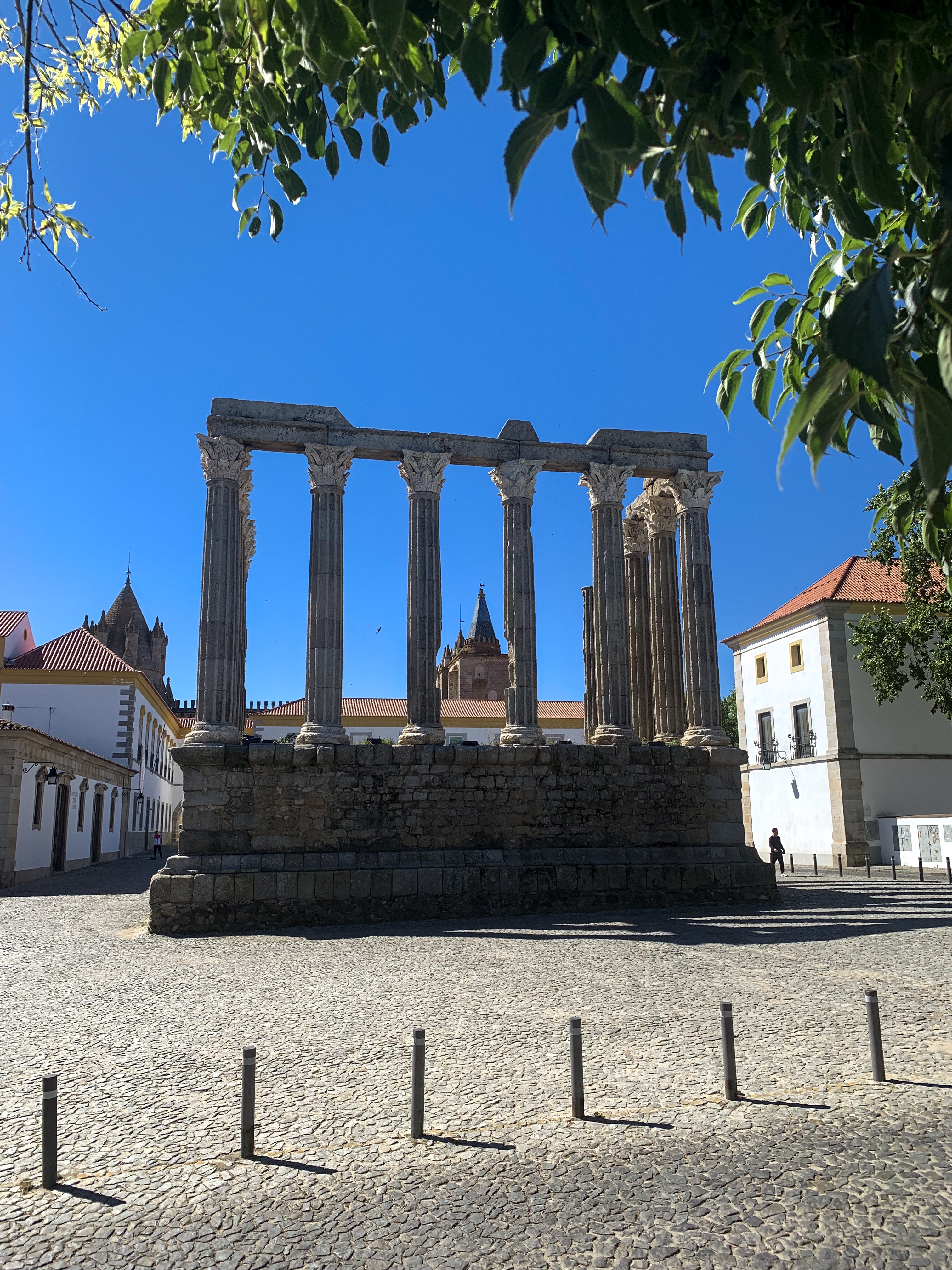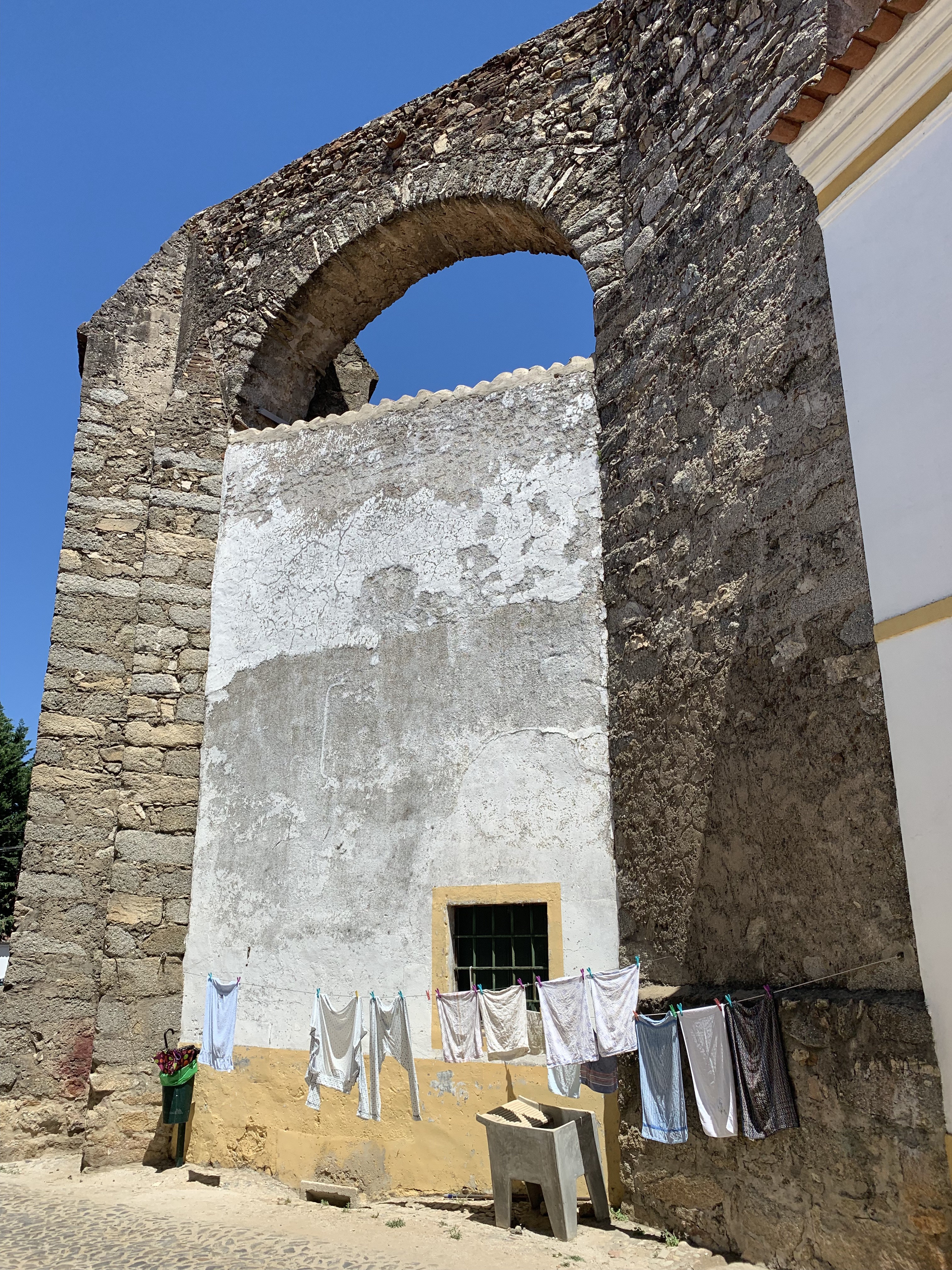 The weather has been very hot the last couple of days with temps in the low 90’s. I haven’t seen any rivers by Évora so it is interesting on why settlers built a town here a long time ago. Évora is a UNESCO site and has been inhabited since the 2nd century BC. A lot of the architecture has been preserved over the years and the town was spared from serious damage from the big earthquake in Lisbon in the 1700’s. The city is actually less populated now than it was in the Middle Ages. The town is uniquely painted basically in either yellow or blue paint. The town has built within the original walls and aqueduct.