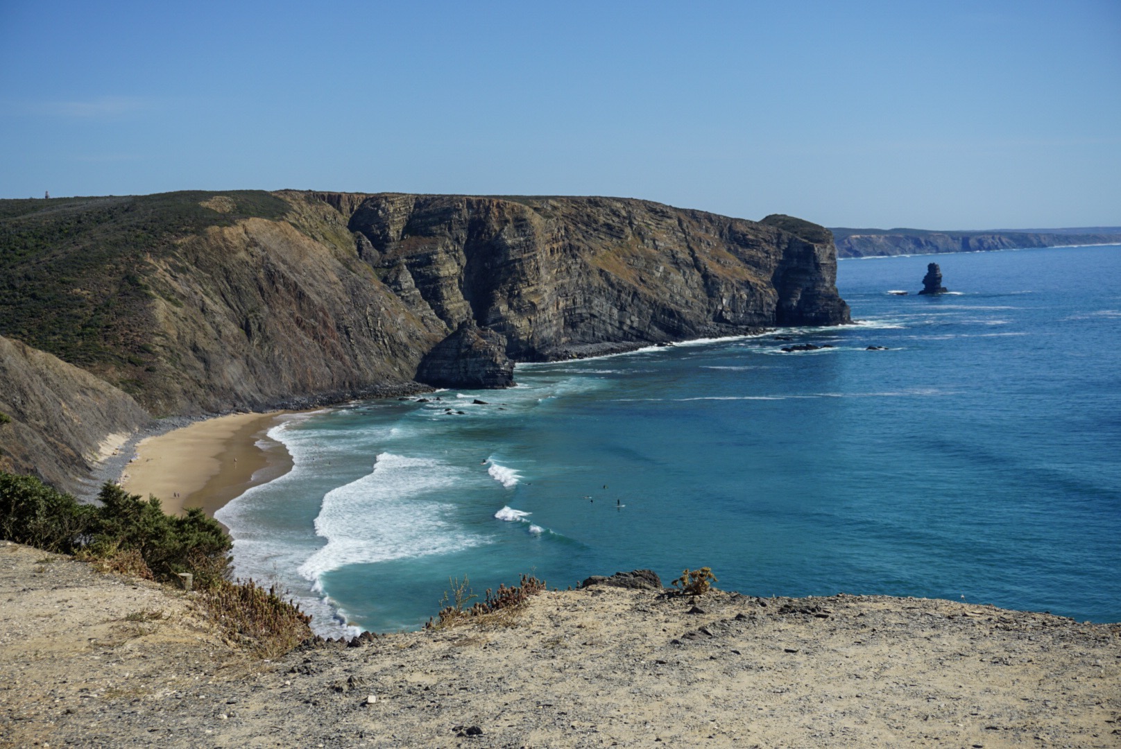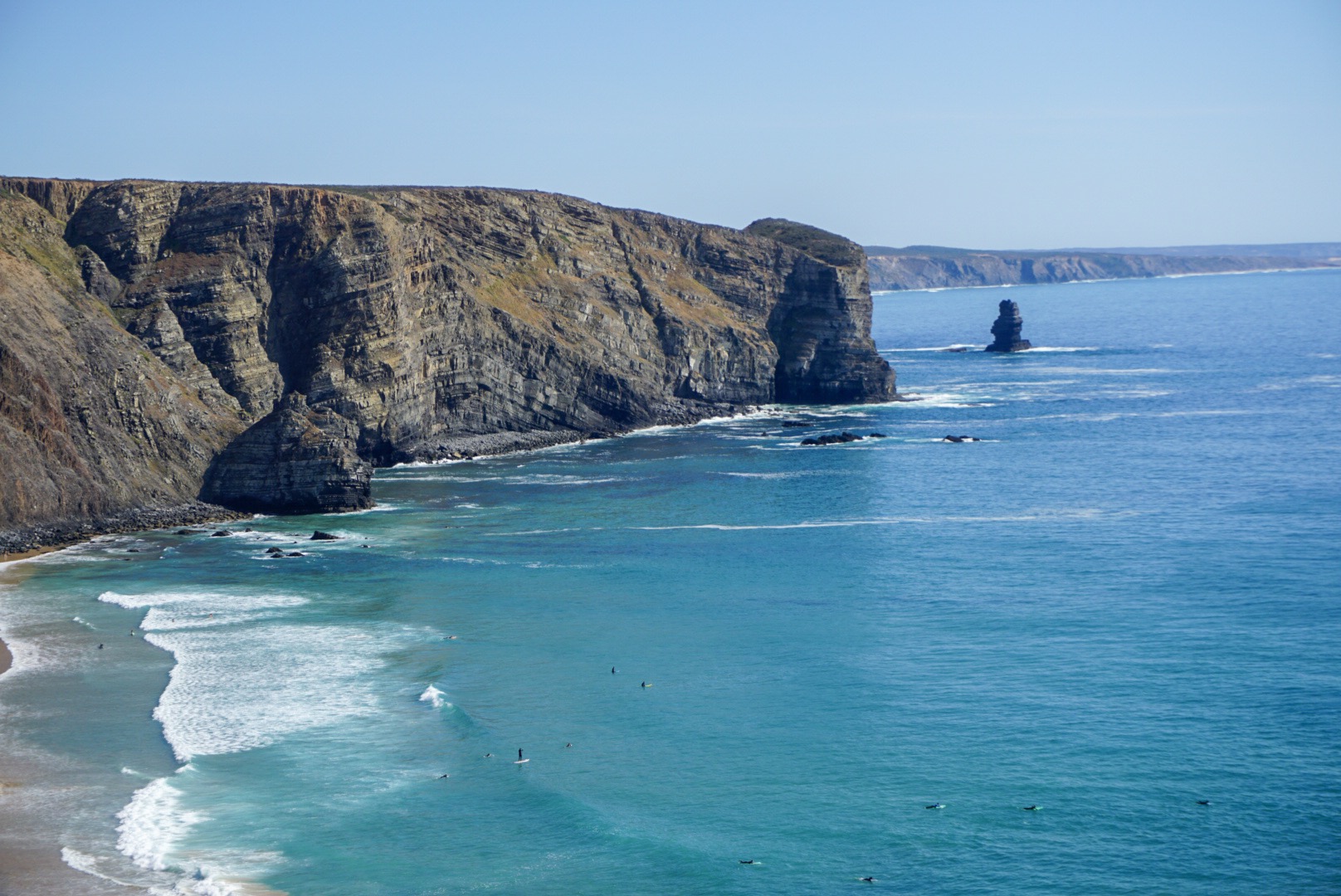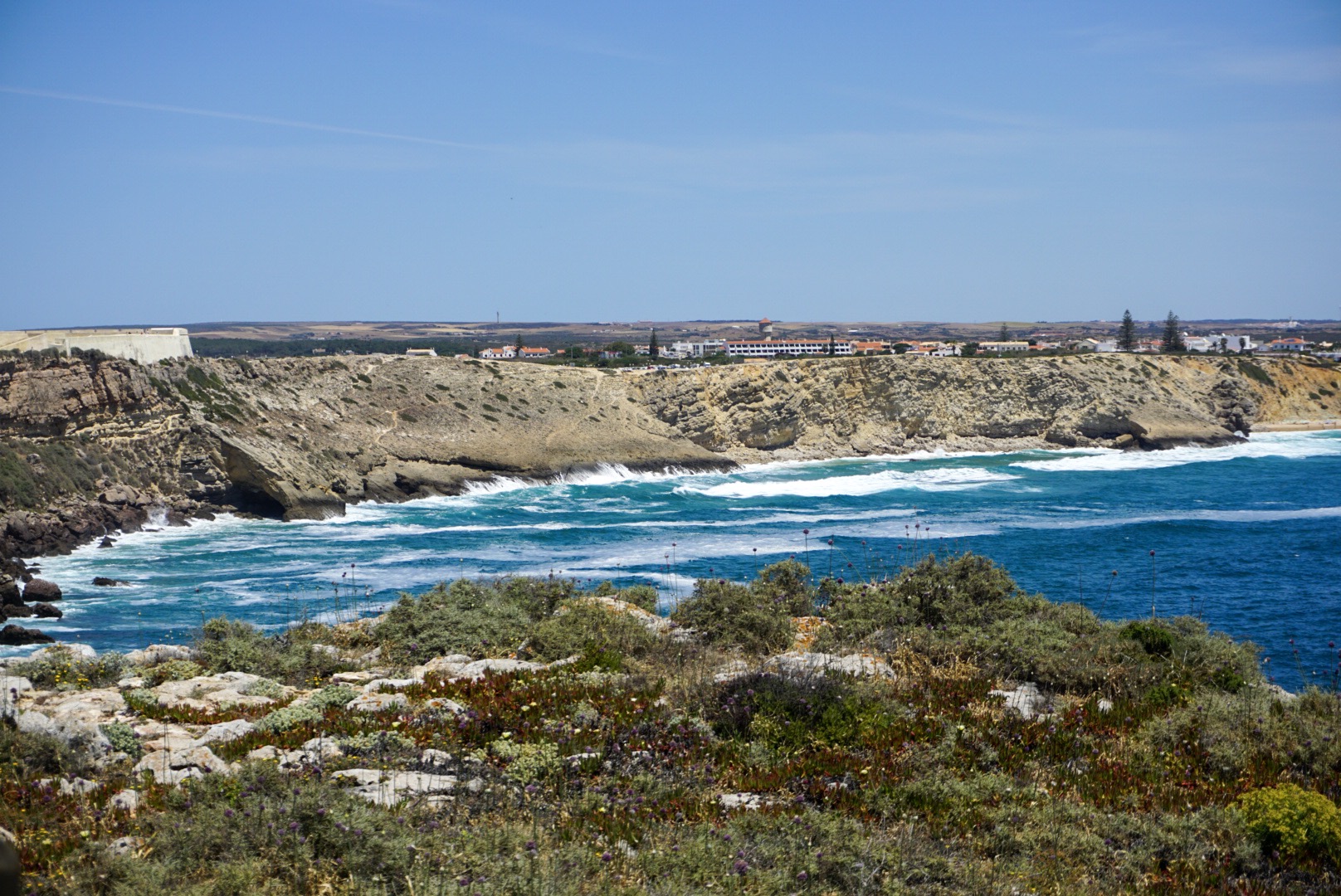 After the two hour tram ride, we headed to the train station. It is a 40 minute train ride to Cascais which is on the Atlantic Ocean. The train is only $1.50 so it is a bargain to take the public transportation. The town was better than expected and it was one of the cuter towns we went to. They had cute cafes to eat outdoors and a nice park. Monday was a national holiday in Portugal so the park was full of locals playing in the park. You could basically bike the same trail from downtown Lisbon to the same town we were in so we decided to walk back on some of the trail next to very nice beaches and pretty blue/green water. I’m sad the trip is coming to an end but I have loved seeing new places and always look forward to planning another trip.