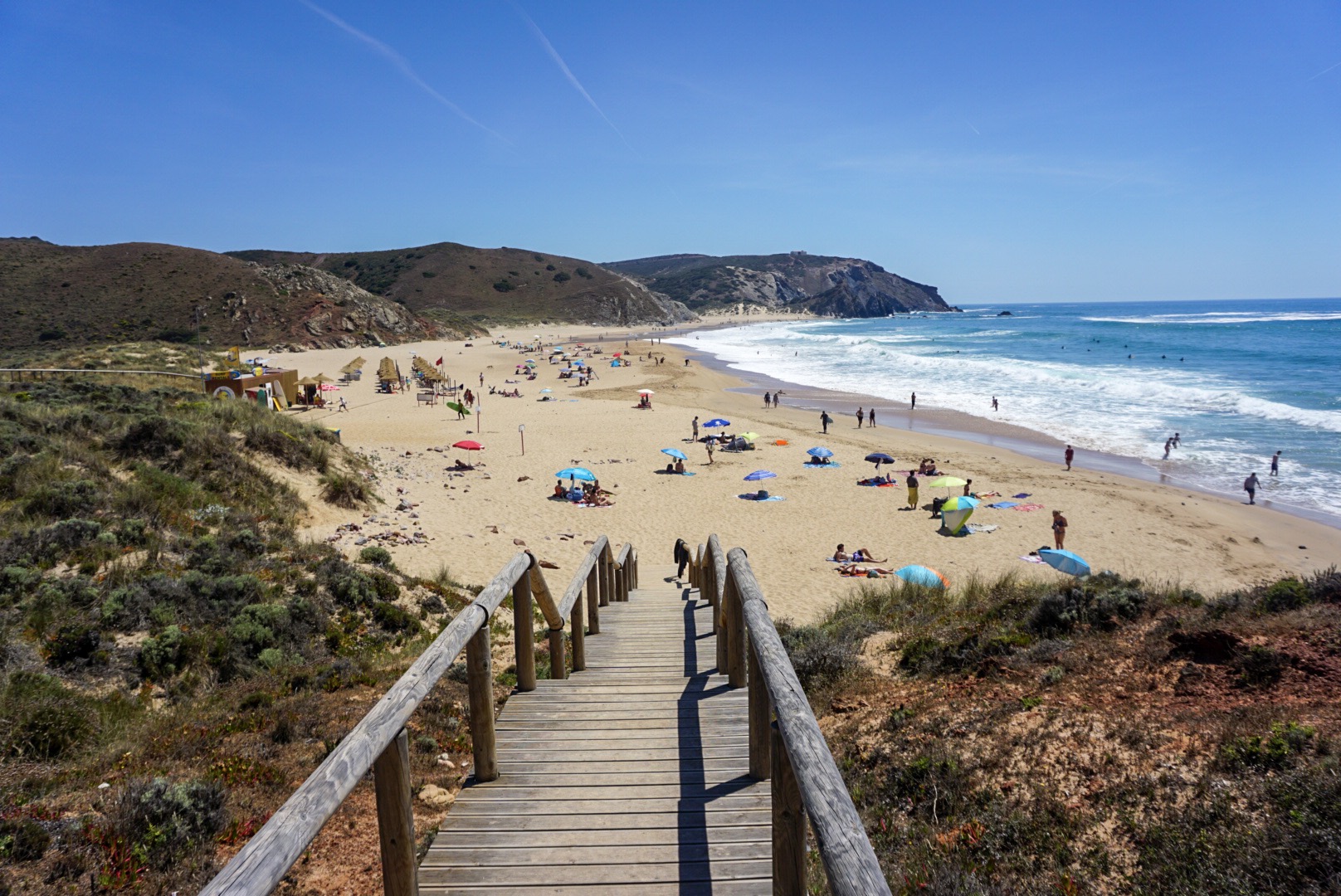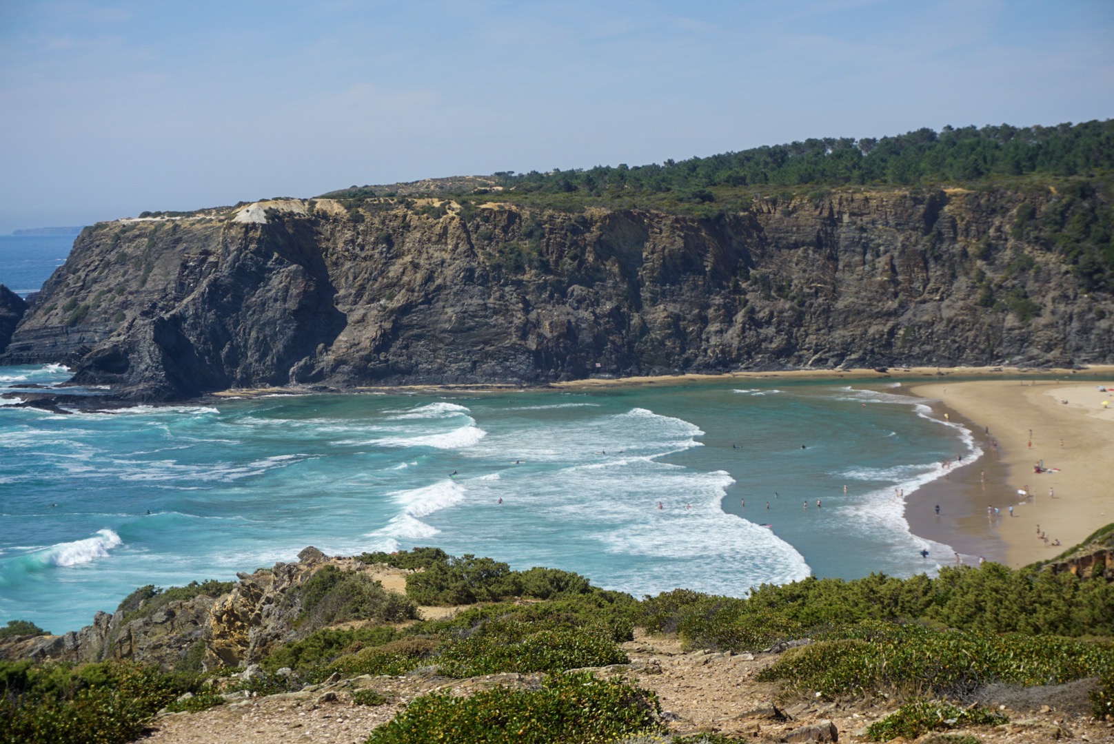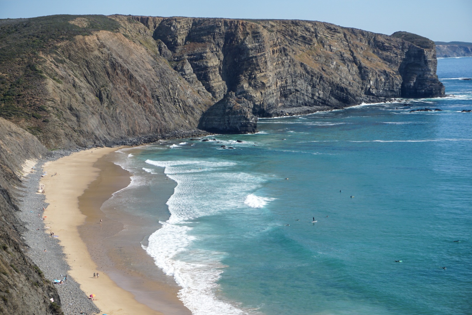 After the two hour tram ride, we headed to the train station. It is a 40 minute train ride to Cascais which is on the Atlantic Ocean. The train is only $1.50 so it is a bargain to take the public transportation. The town was better than expected and it was one of the cuter towns we went to. They had cute cafes to eat outdoors and a nice park. Monday was a national holiday in Portugal so the park was full of locals playing in the park. You could basically bike the same trail from downtown Lisbon to the same town we were in so we decided to walk back on some of the trail next to very nice beaches and pretty blue/green water. I’m sad the trip is coming to an end but I have loved seeing new places and always look forward to planning another trip.
