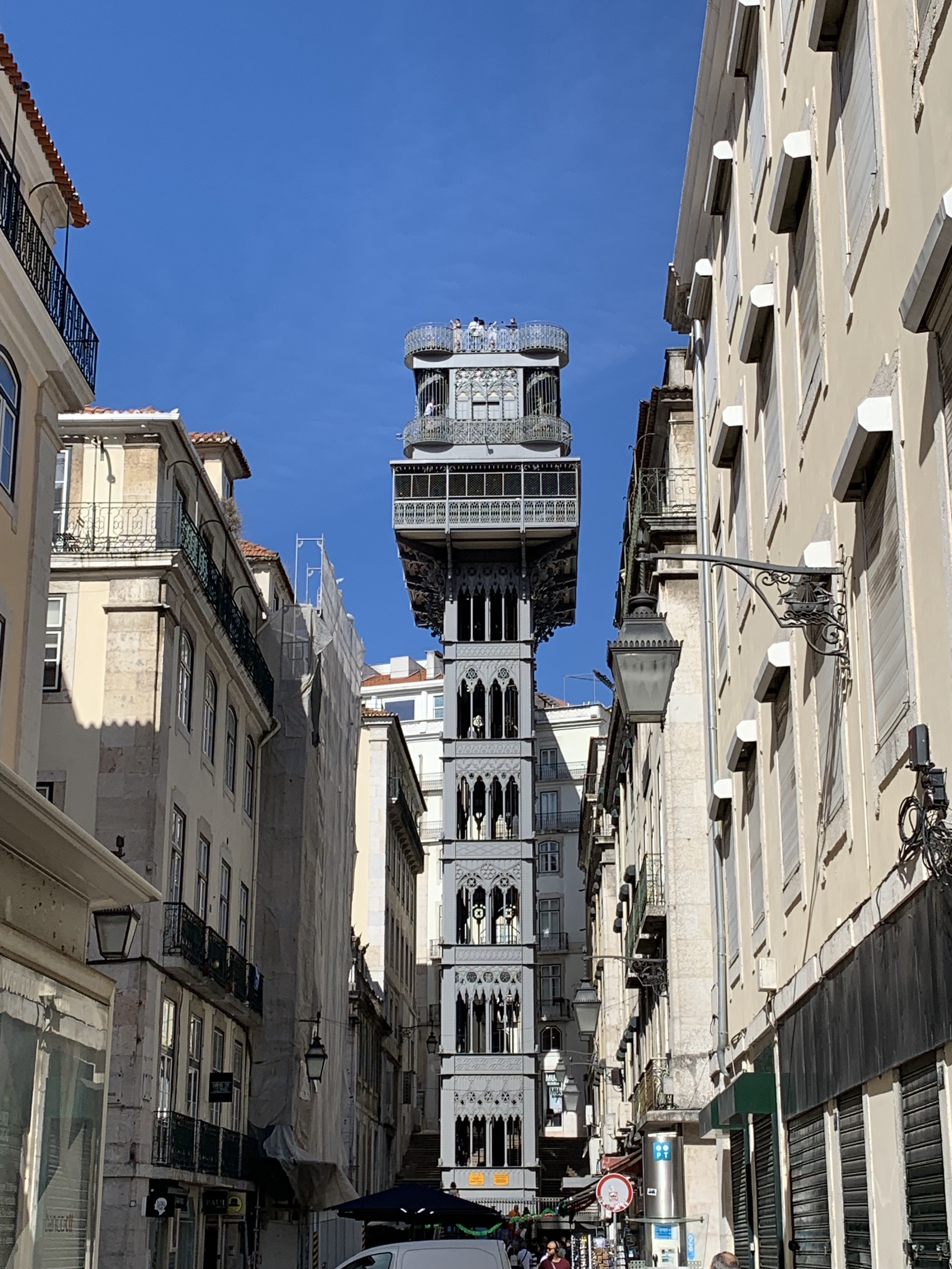 Yesterday was our last day in Lisbon before starting the journey home. We started the morning by taking a tram tour of the some of the famous hills in Lisbon. We figured it was much better to do a tour instead of waiting in the very long line for the public tram to go the same route. It was a pleasant tour and we had a seat the entire time and could watch the driver. Some of the streets are so narrow that one one tram will fit at a time and people have to give way to the tram because it is so close to the houses. Everything was going smoothly until we got to one area where a car didn’t park properly. The tram tried to get by but the driver ended up calling the police to tow the car. So we had to wait about a half an hour for that fun to end.
