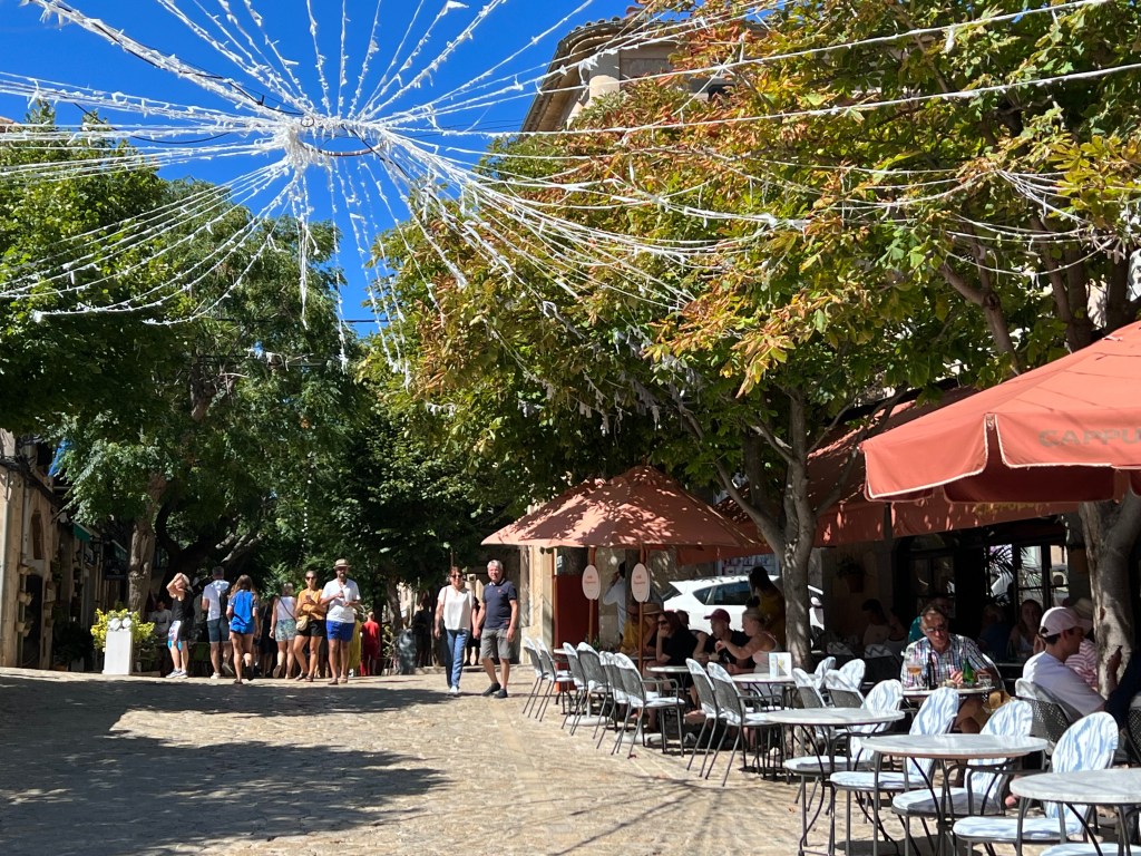 Mallorca has always been on my radar to visit, and it didn’t disappoint. We are staying in a very quiet town kind of in the center of the island. We did this for a couple of reasons. First, it seemed like a good way to see the island and second, I don’t always like the resort tourist towns on the coast that can tend to be loud. We are literally in the exact opposite of loud. The hotel just sent us the code, and we checked ourself in. Parking is a bit difficult as you have to find a place along the street that allows parking. The town might look empty but parking has been a challenge in the narrow roads. I think everyone keeps the shutters closed because of the heat outside.